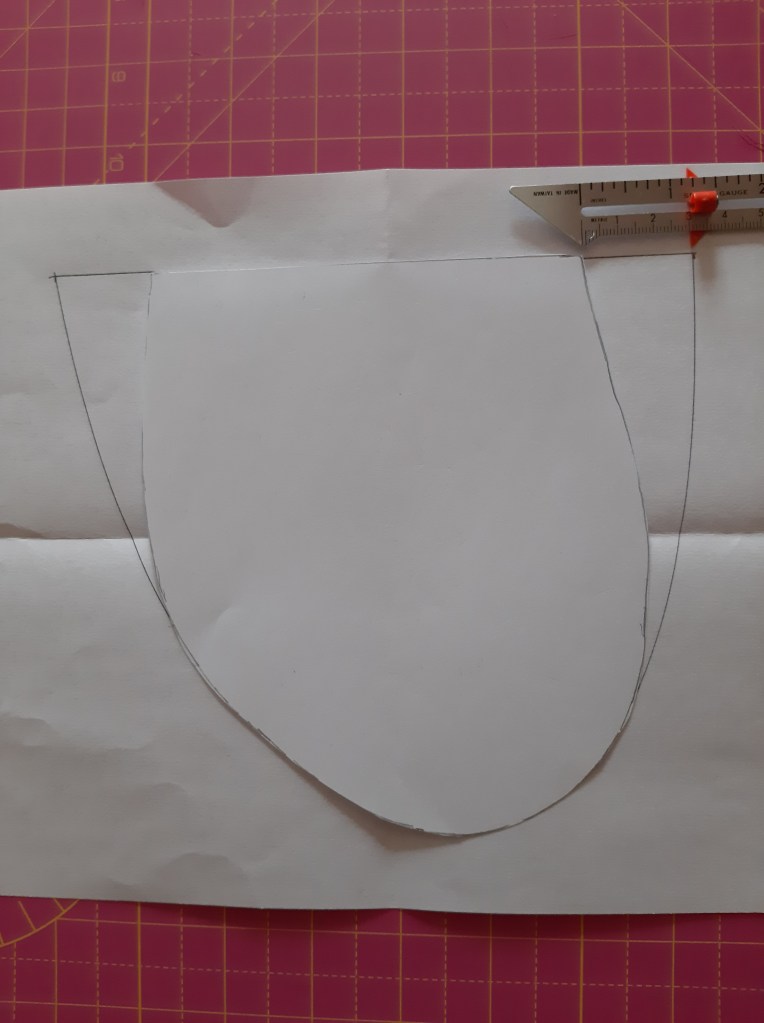 3. Add 2.5cm all the way around – for seam allowance, wearing ease, and a little extra to play with during the fitting stage. This is your sole pattern piece.