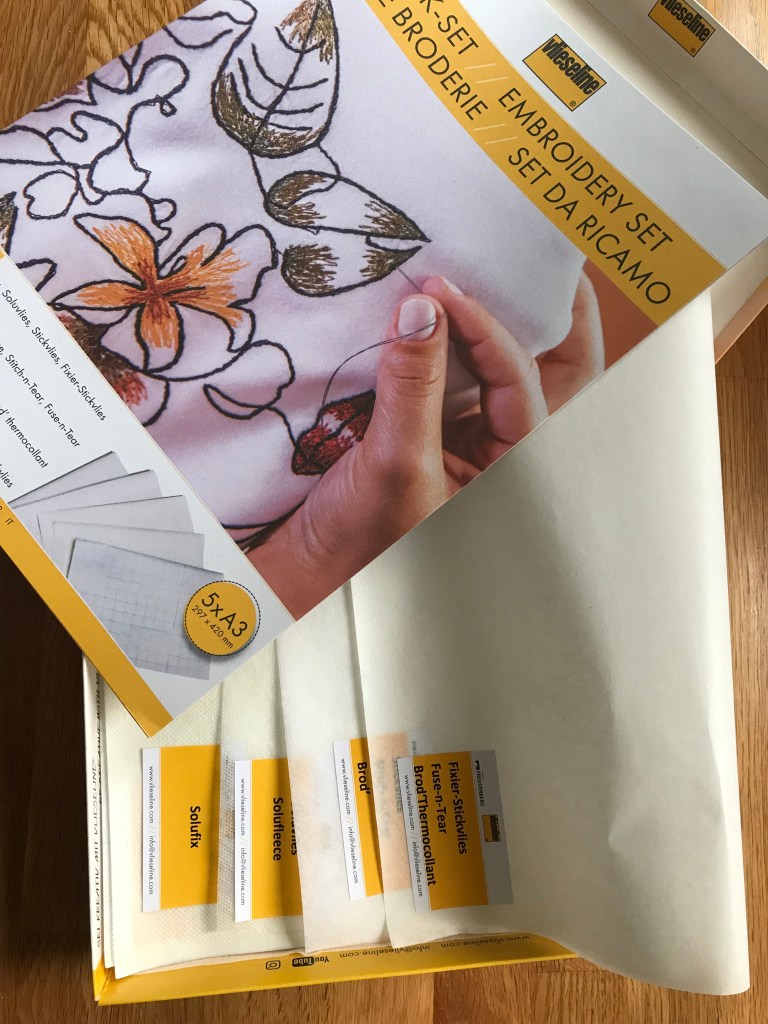The Vlieseline Embroidery Set is a collection of five A3 samples of Vlieseline interfacings for different styles of hand and machine embroidery.