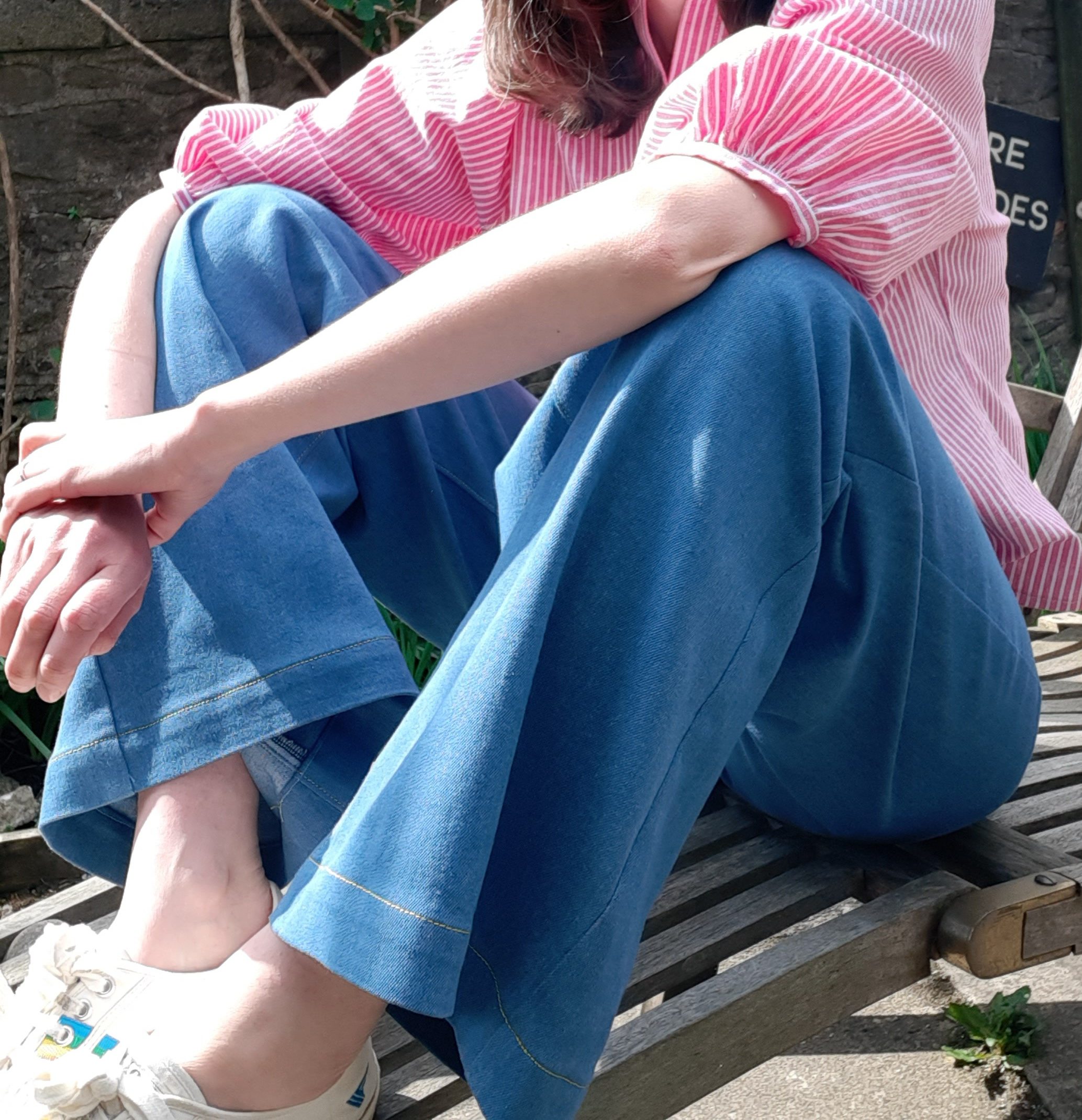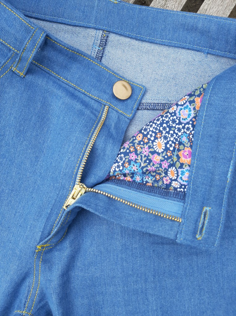 These jeans are great for the warmer months. The fabric choice was key – a fairly lightweight stretch denim from Minerva in what I consider to be the perfect jeans blue. The style and colour give them a gorgeous vintage feel – the beauty of being able to sew is that we can all get a well-fitted pair of 70s-style flairs without leaving the house.