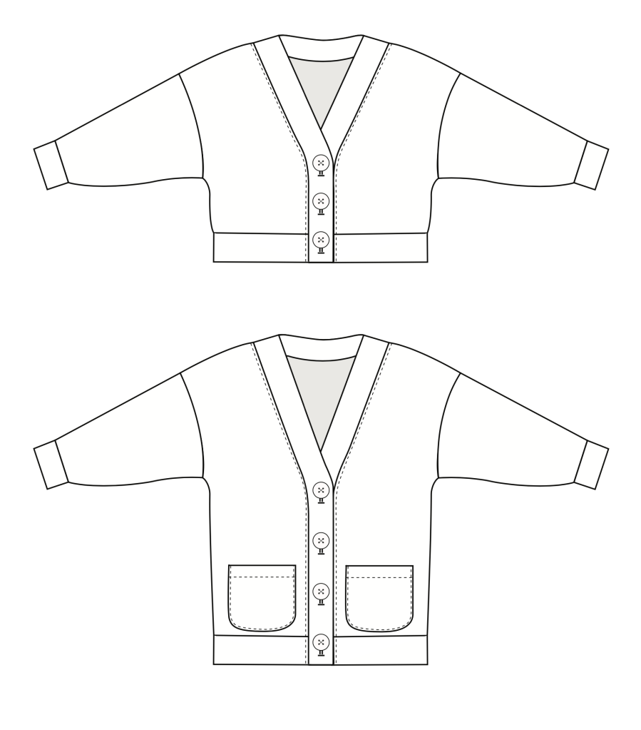 The pattern is well-drafted and easy to follow. Once your pieces are cut out it comes together very quickly – mostly sewn on an overlocker. There are two ways to finish the insides – the beginner’s technique is overlocking bands and body in one go which lends a neat finish worthy of any high street store. The ‘intermediate’ technique, which involves sewing one edge of the band RST with the body and then finishing the other side WST with topstitching, gives a more polished look.