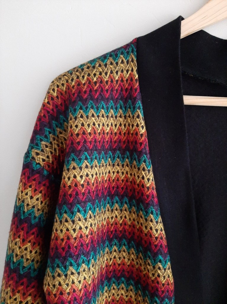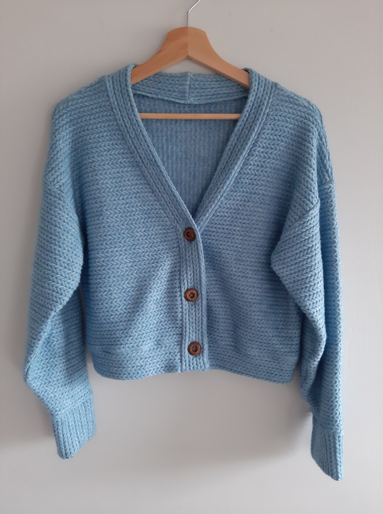 This cardy doesn’t tick any of the big voluminous boxes the Marlo aims at. It’s a snug fit and works best with a handful of items: baggy high waisted trousers, jeans and skirts. Still, it works, and I’ve managed to get a reasonable amount of wear out of it – which, for a remnant, is pretty good going in my book.