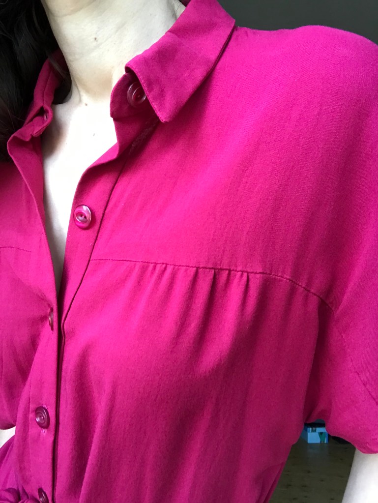 I love how this version turned out, but the front placket issue remained – I followed the instructions (so I thought) to the letter and still, when trying to button up to the top, the plackets failed to align. It doesn’t matter much as the dress looks fine with the top buttons undone (and, let’s be honest, no normal human is as eagle eyed as we are about our own sewing) but it was a bit disappointing to see the same error, even when sewing like a snail and using the most reliably stable fabric I could find for the job.