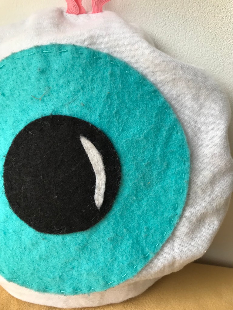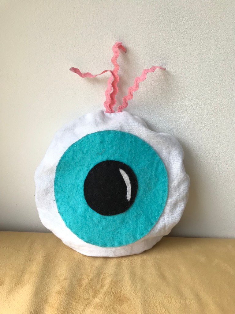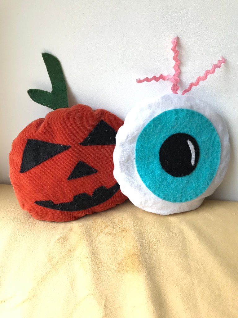 Perfect for creepy decor, halloween treats or (strung from a bit of elastic) costume accessories, these easy-to-sew cushions make a great learner project for kids and are guaranteed to bring a smile on the scariest night of the year!