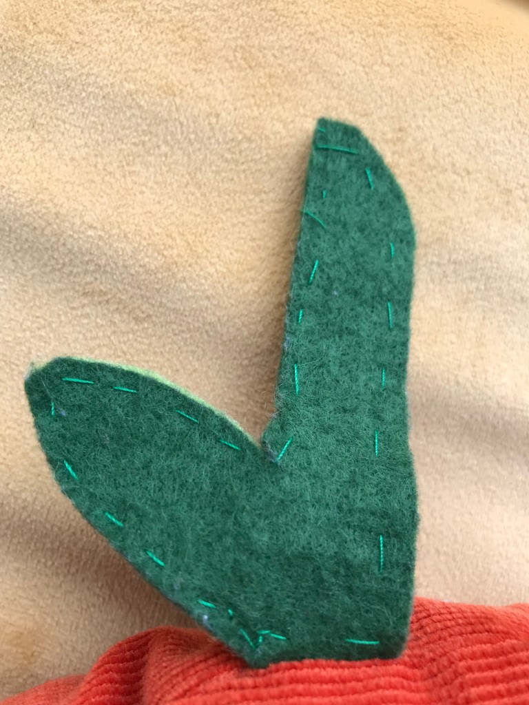 4. Position the pieces on the right side of the front. At this stage, you can dab a little bit of fabric glue on the back of the felt pieces to ensure they stay put.