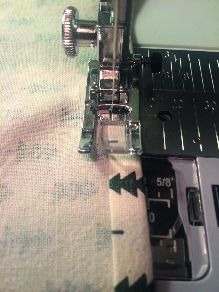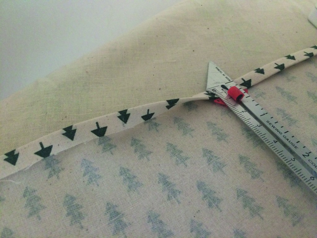 Exact seam allowance doesn’t really matter, the rule of thumb is that each fold should be the same amount. Here we’re working with a half inch or 1.25cm allowance.