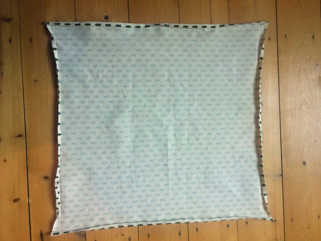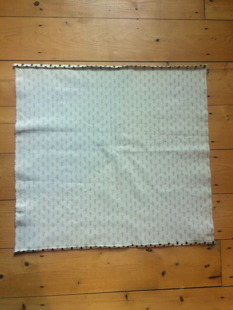First, cut out fabric to desired size, allowing for your seam allowance. Make sure your napkins-to-be are nice and square at the corners. I like to cut 45cm square napkins as this means you can squeeze six napkins out of 1m of 140cm wide fabric.